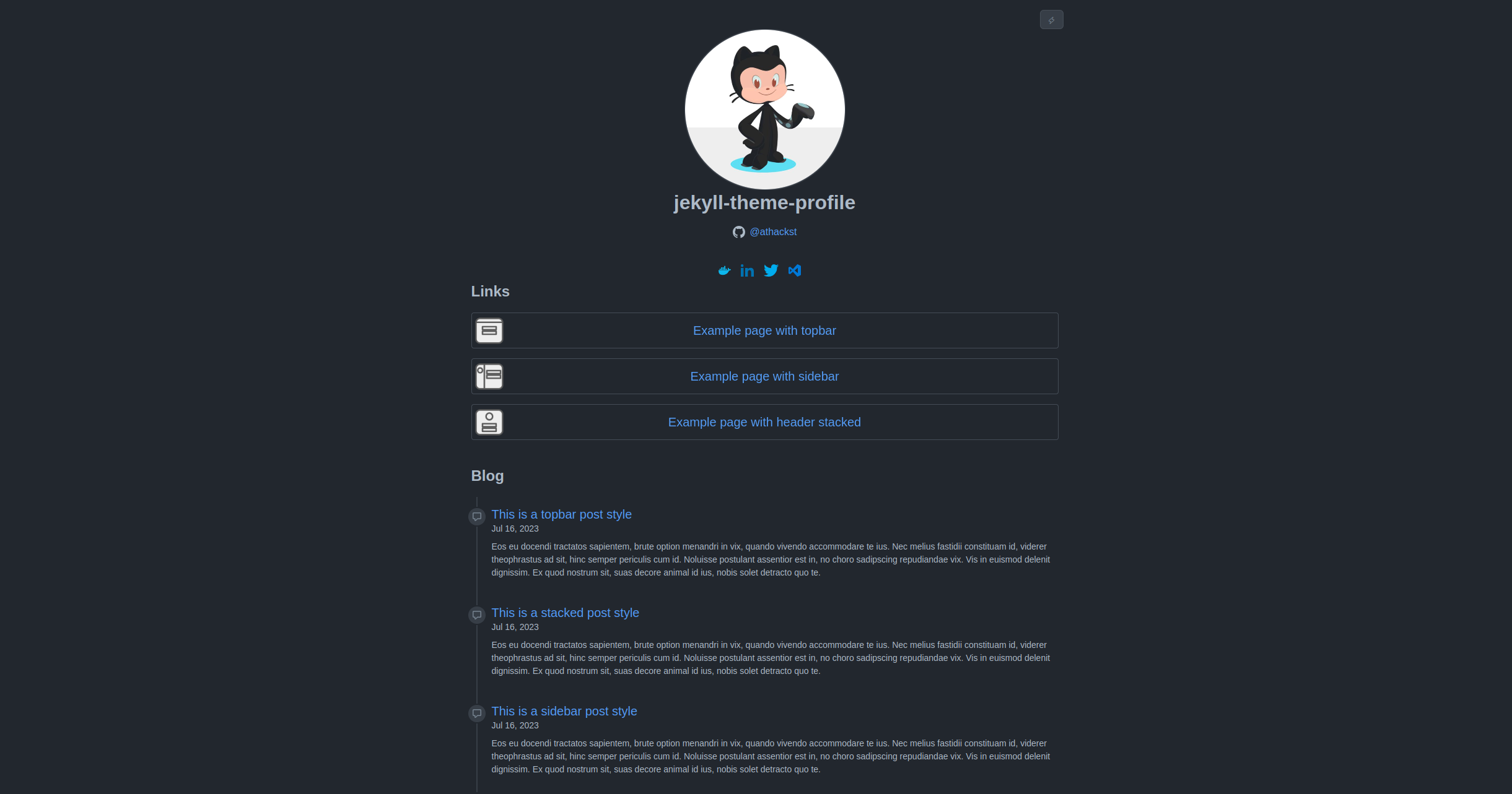 The stacked style modifies the theme’s header section to provide a clean, GitHub-like navigation experience. It features
