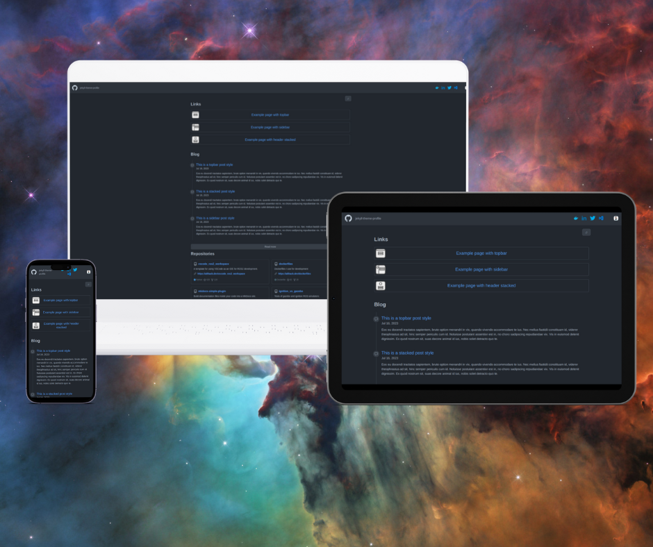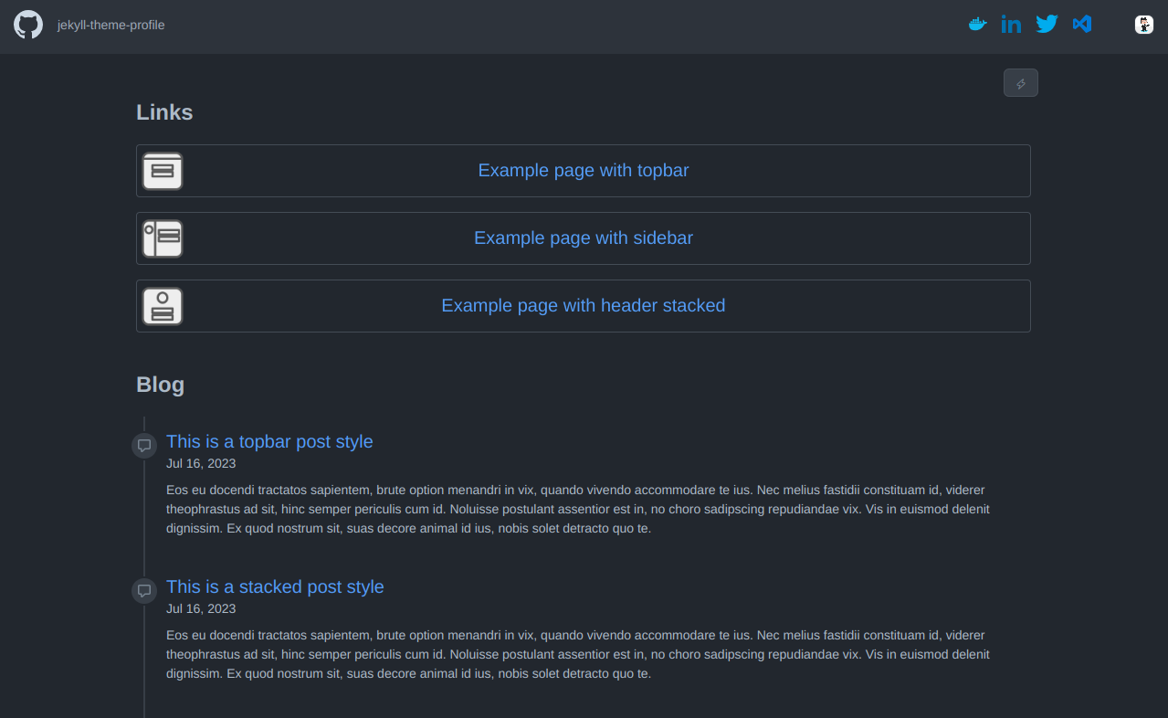 The topbar style modifies the theme’s header section to provide a clean, GitHub-like navigation experience. It features
